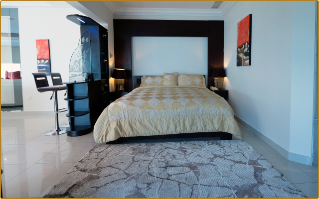 This suite has a satellite TV, tile/marble floor and air conditioning.